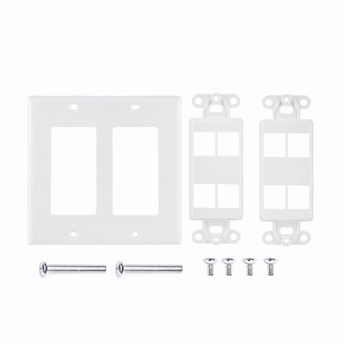 2-Gang Wall Plate for Keystone, 8 Hole -White