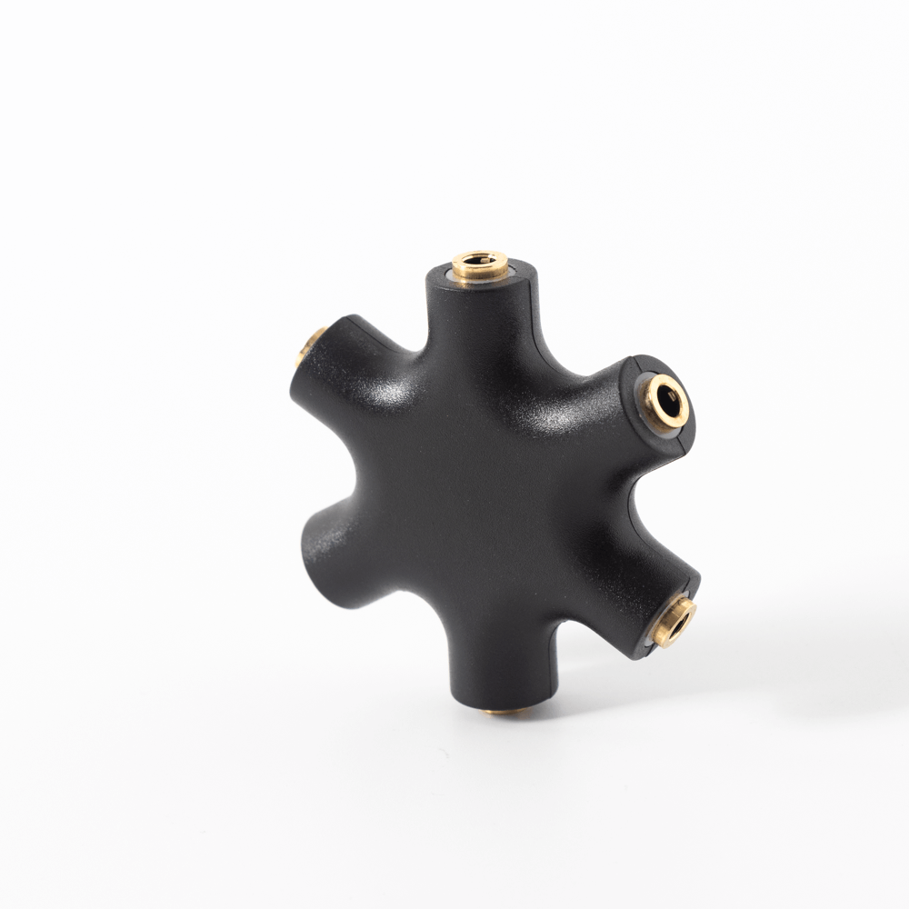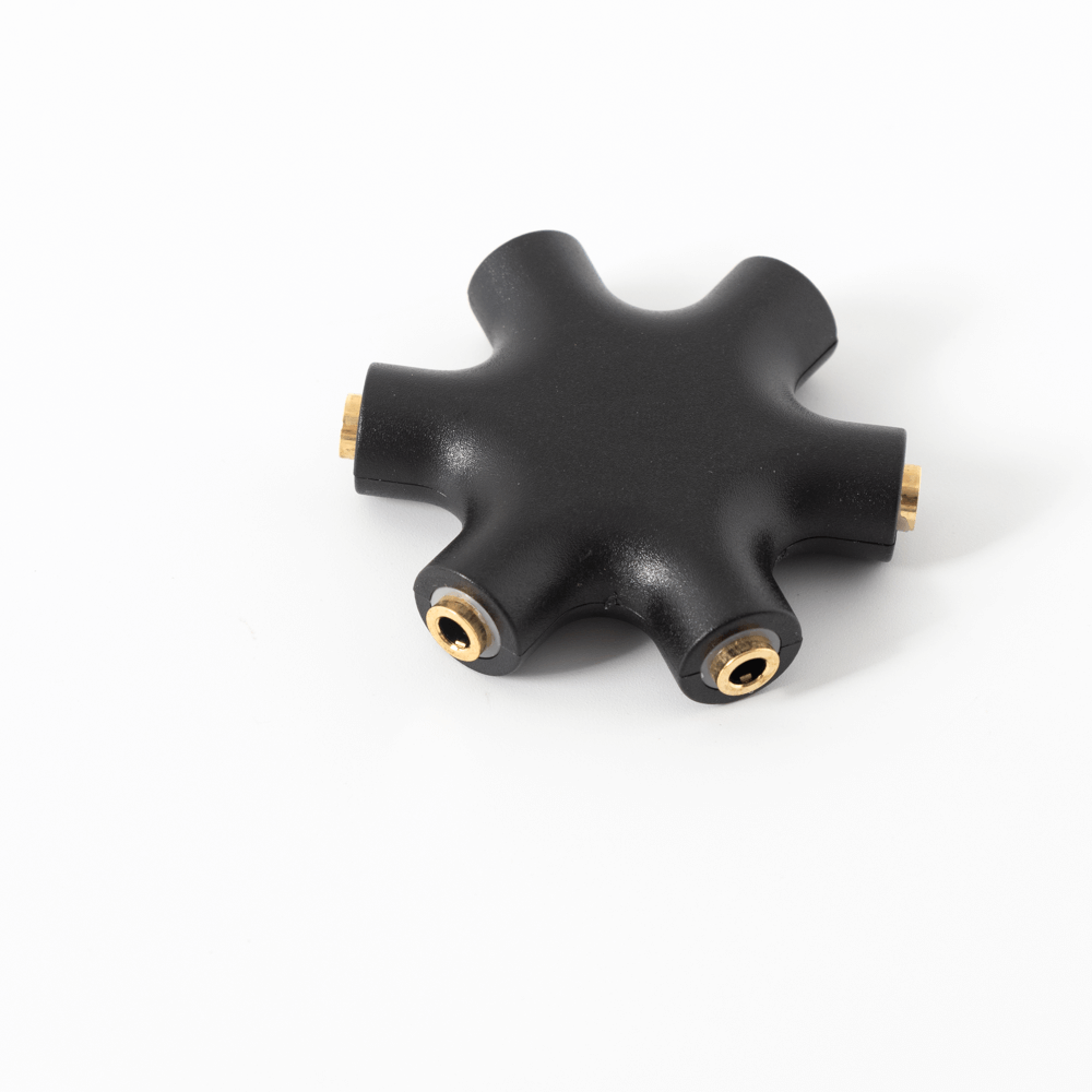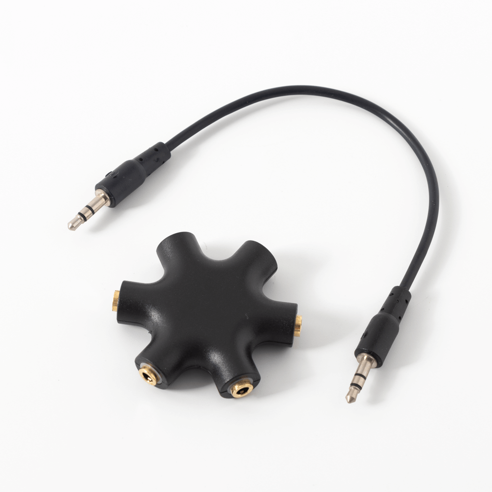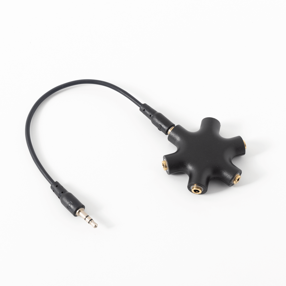 Headphone adapter splits line into 5 auxiliary (3.5mm) ports for easily sharing sound with up to 5 people