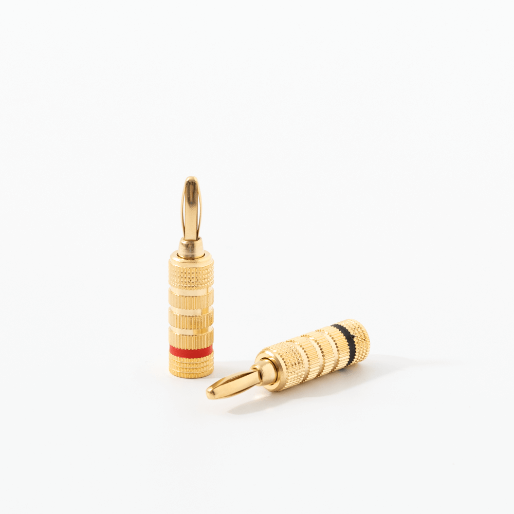 Simple installation of 4 piece banana adapters; A removable tip and screw-on base build it straightforward to insert and secure the cable; Connect your speakers to the proper terminals with the colour coded red and black polarity rings on the banana plug cable pairs