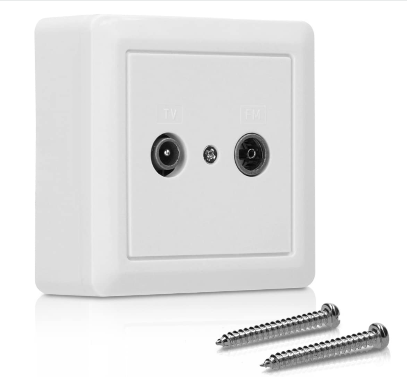 The double aerial socket lets you connect radios and TV sets quickly and easily. It comes with a white wall plate and screws for easy mounting.