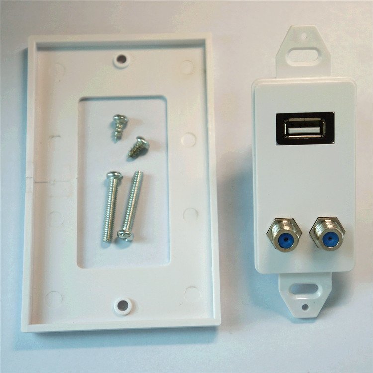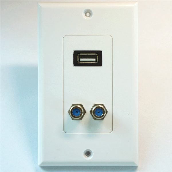 Dual F Connectors and USB 2.0 socket Coaxial Wall Plate